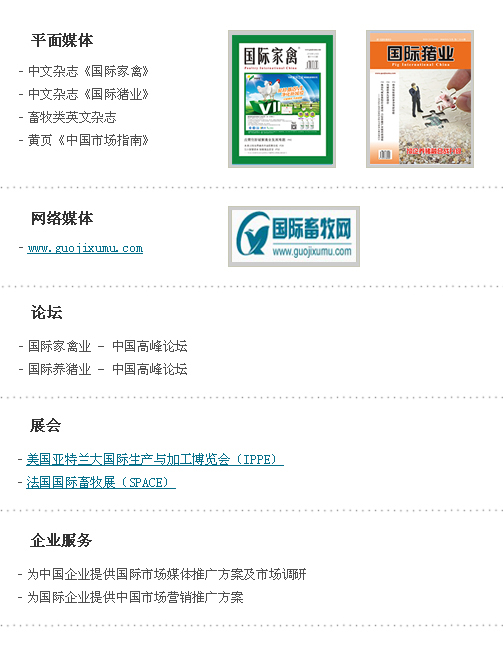 《国际家禽》杂志——莱伽传媒 商务合作:刘银环(Laura)+86 186 21247655;Lauraliu@lyja-china.com; 张雷 (Gordon)+86 131 62627726;Gordonzhang@lyja-china.com: 参会事宜:李女士(Ms. Li) +86 137 64039062; guojijiaqin@163.com 公司电话:(021)6447 4625