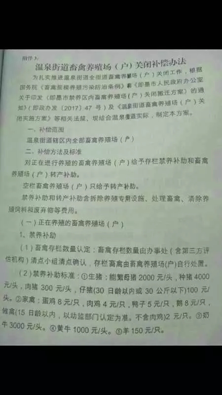 即墨市温泉街道畜禽养殖场(户)关闭补偿办法