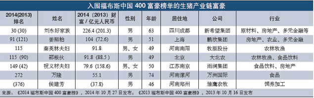 中国生猪产业链富豪财富比较