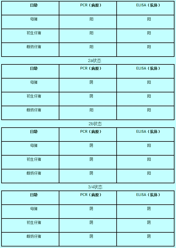 最后一步还要定期监测猪群情况。他建议重点监测断奶后2-4周的病原,以区分2a和2b的状态,然后再往前追溯新生小猪和母猪的病原情况,查找发生问题的环节,制定应对措施。