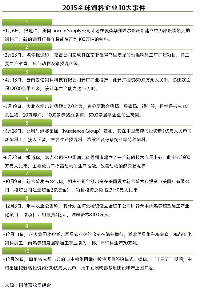 2015全球饲料企业10大事件