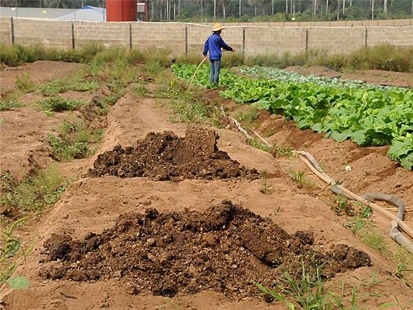 图为农场将鸡粪用作种菜的肥料