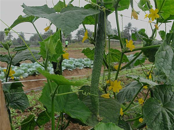 图为农场菜地种出的黄瓜