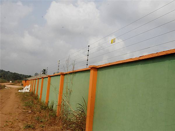 图为农场的围墙和电网