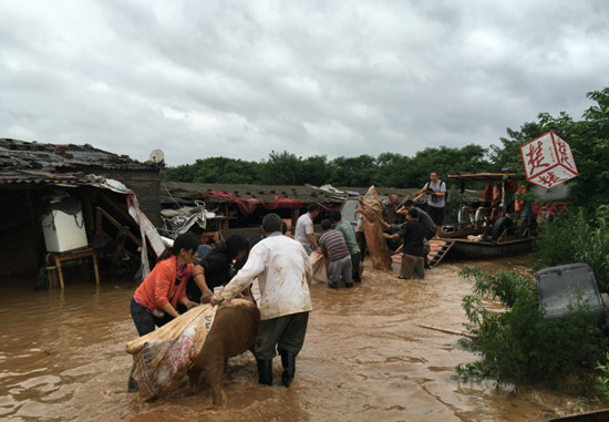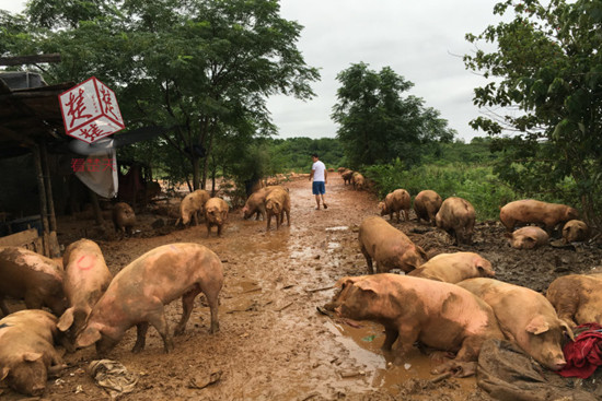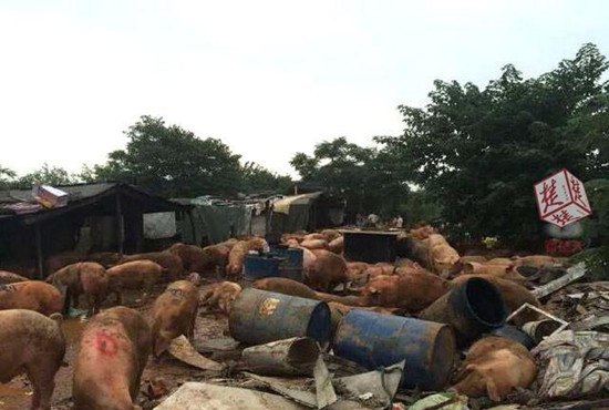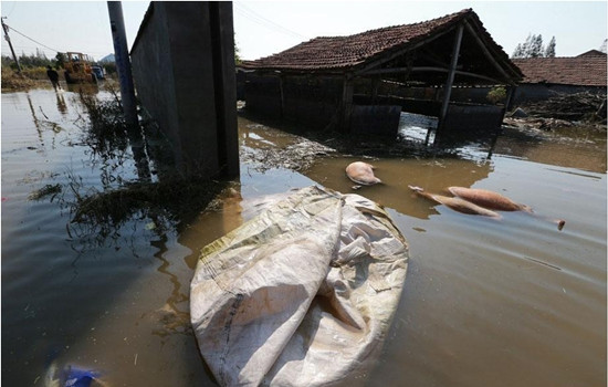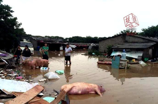 湖北黄陂盘龙城丰山村有七八户养猪专业户,共有上千头猪,这两天的暴雨导致猪场淹水两米深。众人和猪一起游泳转运到附近小山坡上,其中淹死了10多头。目前上千头猪被困小山坡,没吃的又淋雨,有的也奄奄一息,目前求助大的船只转运。