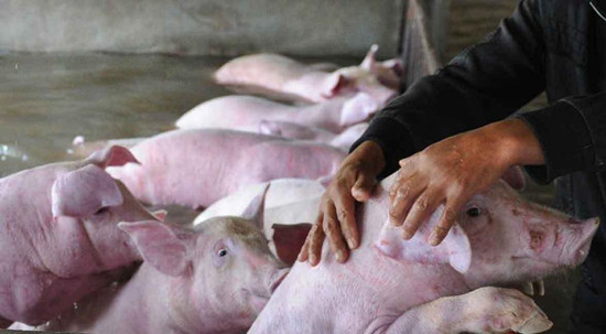 2016年7月4日,安徽六安,舒城县康元农业生态发展有限公司养殖场内,6000多头生猪已浸泡在洪水中近20小时。图为殖场工人李祖明在养殖场内望着没有生还希望的生猪,承受着“生离死别”之痛。