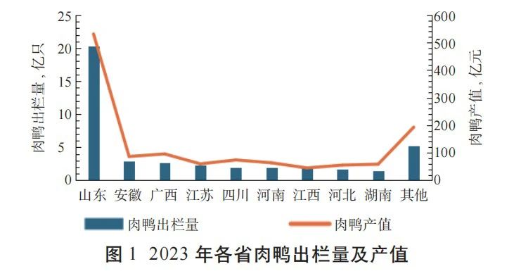 近日,《2023年水禽产业与技术发展报告》正式出炉,通过对全国23个水禽主产省(市、区)水禽生产情况的调查统计,2023年水禽产业总产值2 172.41亿元,较2022年增长2.54%。全年商品肉鸭出栏 42.18亿只,较2022年增长5.40%;肉鸭总产值1 263.69亿元,较2022年增长5.04%。蛋鸭存栏1.49亿只,较2022年下降1.32%;鸭蛋产量267.05万t,较 2022年增长0.81%;蛋鸭总产值377亿元,较2022年下降 3.03%。商品鹅出栏5.15亿只,较2022年增长10.04%;肉鹅产值531.72亿元,较2022年增长0.95%。