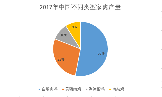 2017年中国不同类型家禽的产量(数据来自Poultry World)