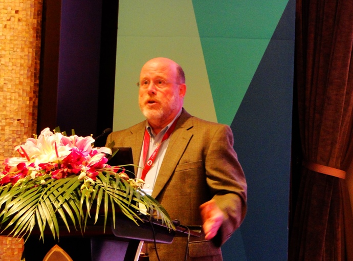 联合国粮农组织(FAO)饲料财团总裁、生命周期评估方法(LCA )研究所主席Mike Goble做主题演讲