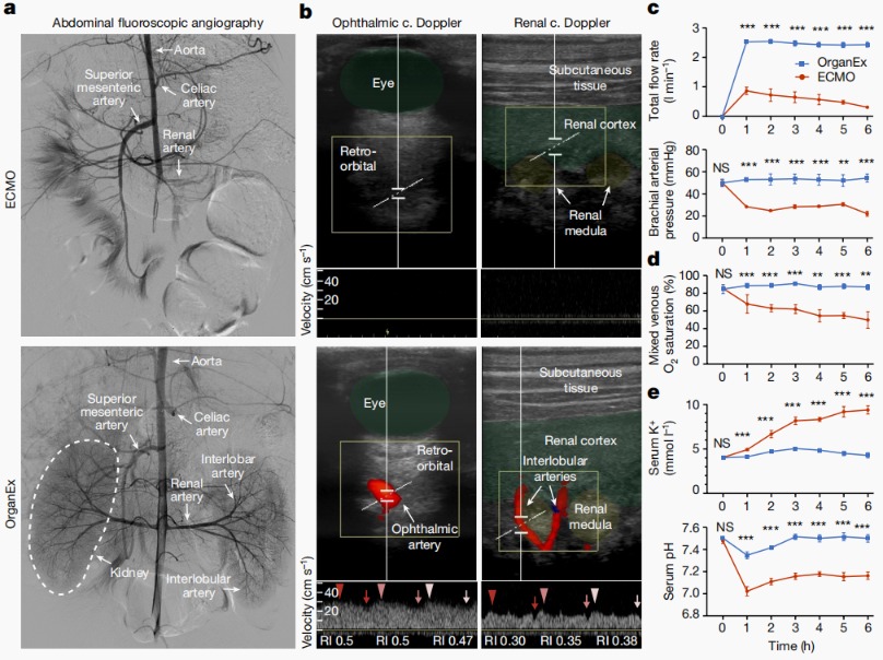 研究表明,ECMO不能完成所有器官的恰当灌注,研究人员发现许多较小的血管已经发生了塌陷。相比之下,OrganEx系统的使用能达到完全再灌注的效果,同时维持稳定的耗氧量,并且研究人员没有检测到典型的缺氧电解质紊乱和异常酸性体液。