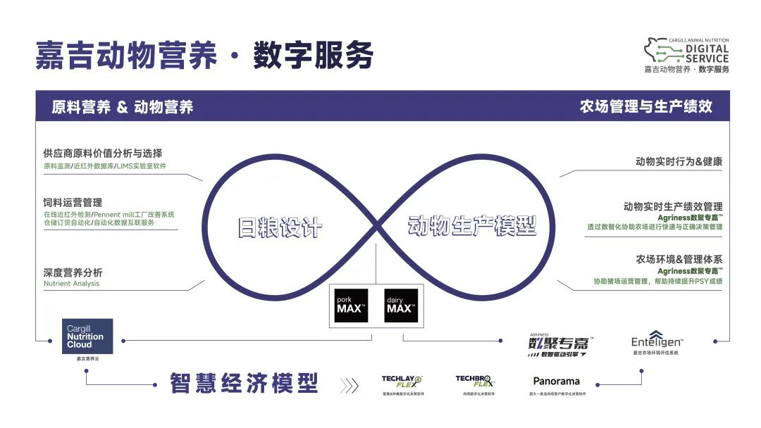“精准营养、智慧养殖”,嘉吉在中国推出了包括Agriness数聚专嘉TM、Enteligen TM、TECHLAY TM、Panorama TM等众多智能化决策软件,帮助中国各个畜种的农场更快实现智能化养殖转型。