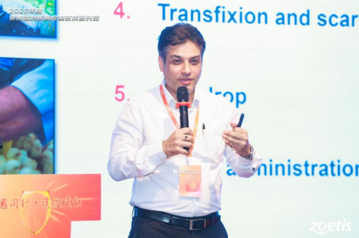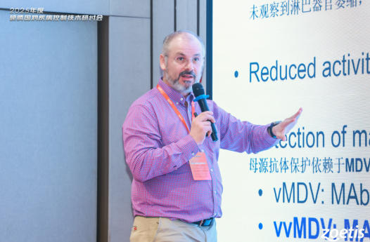 硕腾全球孵化场技术服务总监Tarsicio Villalobos博士介绍了全球马立克氏病发生情况和病毒毒力变化,并分享了免疫抑制模型评估马立克毒力影响。
