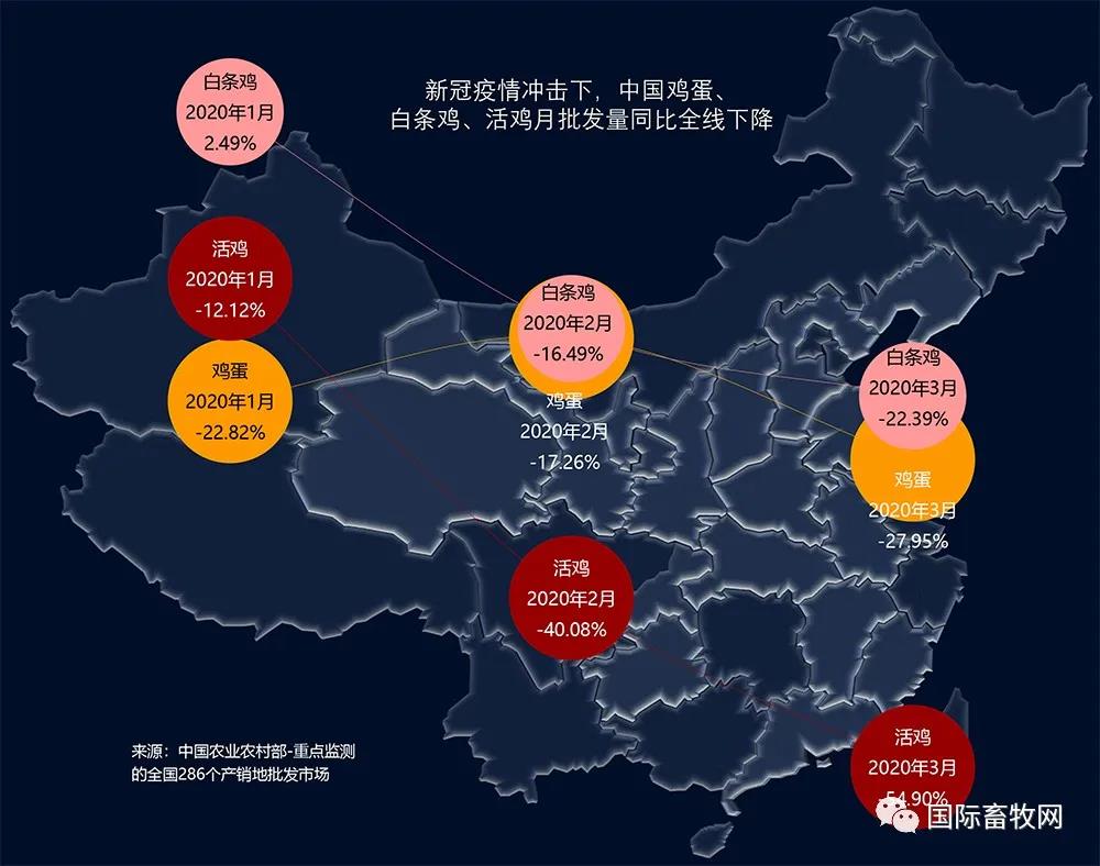 在全球宏观经济增速预期大幅下滑的背景下,中国经济复苏面临多重挑战,各行各业恢复仍将受产业链上下游、周边产业以及消费端的影响,其中尤以制造业、旅游业等领域较为明显,如一些制造企业因外贸订单的取消不得不缩减产能、停产甚至关闭。从国内家禽业来看,新冠肺炎病毒疫情已造成严重损失,据农业农村部重点监测的批发市场数据来看,2020年2月和3月,活鸡销量同比分别下降40%、54%,白条鸡肉销量同比分别下降约17%、22%,鸡蛋销量同比分别下降17%、28%。目前,全国各地家禽生产及饲料、设备、动保等相关产业正平稳恢复,新投、在建的100万羽蛋鸡、1000万羽肉鸡及肉鸭项目已开始动工建设,但受猪肉生产与供给恢复的冲击较大,加之植物蛋白消费更受关注,家禽产能释放后获取收益的空间则变得越来越小。不过,随着疫情缓解、全国多数地区学校将于4月底开学,会提升鸡蛋鸡肉的消费需求,但整体消费需求恢复到往年水平仍需要一段时间,且因新冠肺炎病毒无症状传染者的影响将存在不确定性。