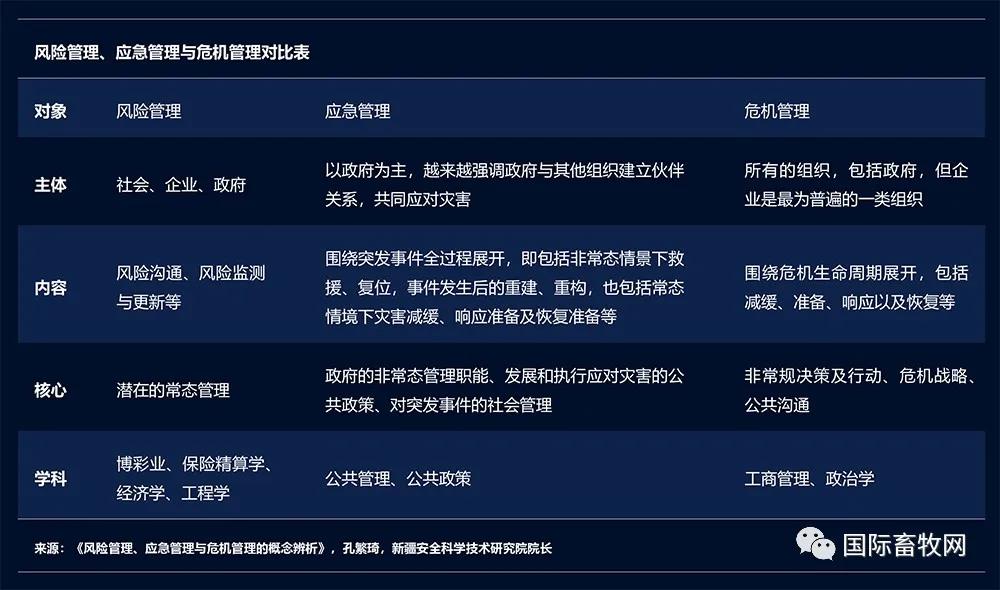 需要明确的是,公共应急管理(Emergency Management)≠公共危机管理(Crisis Management),后者强调潜在风险的识别以及风险转化为危机事件以后应对的全过程,主体包括政府、企业等组织;而前者重点是危机出现后的危害消除,更多的是在实务或操作层面上使用,政府是主体,企业等组织是客体,客体应急关键在与主体的有效沟通、高效协同方面,而非试图扮演/采取在危机管理中的主体的一些角色或行动。