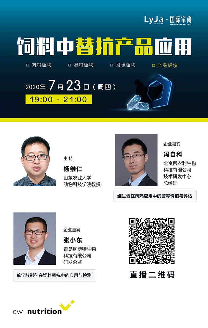 在此之际,莱伽传媒携《国际家禽》于5月发起无抗年度专题,和大家一起探索出一条适合中国国情的无抗路。于7月开展“全球家禽减抗实践”专题直播会议,为大家在线展现先进的无抗经验。7月23日,“产品板块”直播会议邀请布局全球畜牧饲料市场的润博特生物科技和创立中国第一个预混料品牌(震亚)的博农利生物科技,为全国家禽养殖企业带来单宁酸在饲料替抗中的应用与检测以及维生素在肉鸡生产中的营养价值,为中国无抗发展带来更好的生产策略。