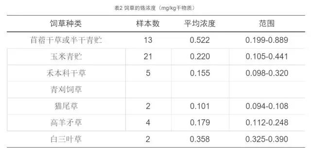 收获后的饲草含有比精饲料较高的铬浓度(表2)。