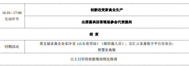 同期活动:第五届家禽企业家沙龙 (山东春雪站)(限特邀人员);农汇云家禽数字平台发布会;智慧家禽展