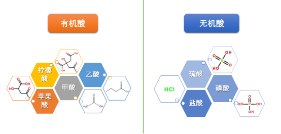 最早人们在畜牧生产中用到的酸化剂主要为有机酸(延胡索酸(富马酸)、苹果酸、柠檬酸、乳酸、富马酸等)和无机酸(硫酸、盐酸、磷酸等)两大类(如下图所示)。