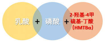 首先,艾维酸WD是三种酸化剂的联合制剂。它包含了一种无机酸——磷酸,和两种有机酸——乳酸、2-羟基-4甲硫基-丁酸(HMTBα)。