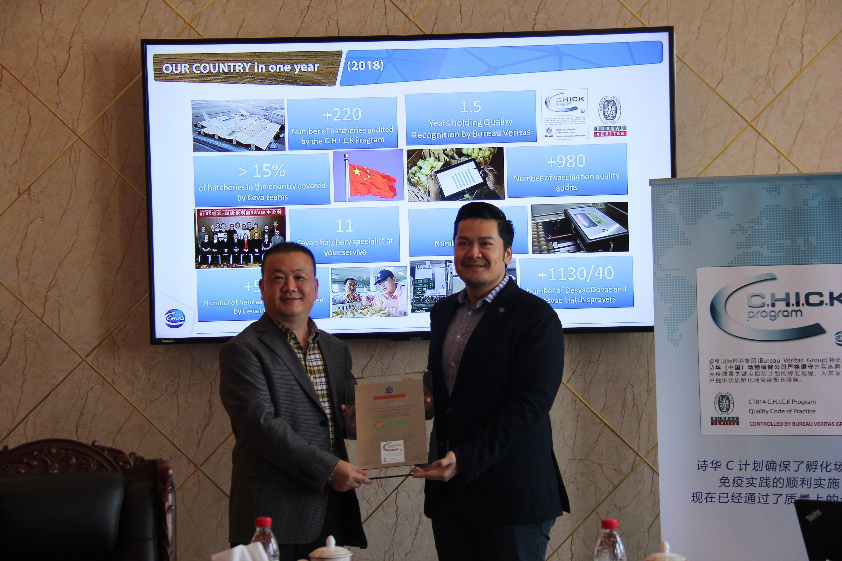 2019年11月20日,诗华中国家禽团队向其重要的战略合作伙伴峪口禽业颁发了通过必维国际检验集团认证的诗华C计划合作伙伴证书,这一活动标志着诗华C计划和峪口禽业孵化场之间的良好合作关系达到了一个阶段性的高度。