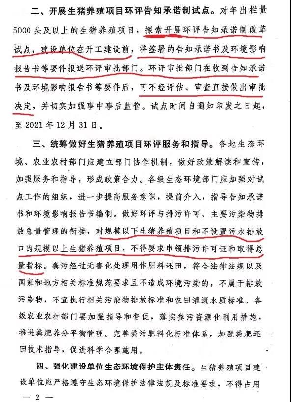 随着最近农业农村部印发的《加快生猪生产恢复发展三年行动方案》出炉,各政府部门目前都在想办法加快恢复生猪生产,千方百计地确保元旦春节和“两会”期间的猪肉供应。近期,生态环境部又与农业农村部联合印发了《关于进一步做好当前生猪规模养殖环评管理相关工作的通知》,其中透露的信息还是相当多的!