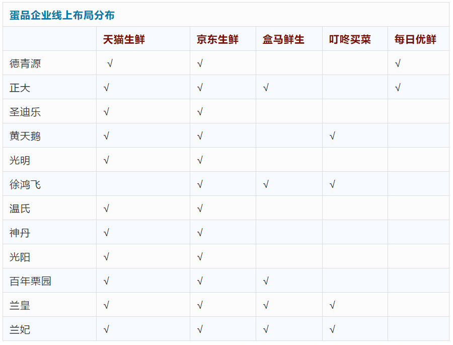 随着疫情的缓解,中老年客户部分会回归到线下消费。仍有部分留在了线上,2020年线上交易仍将是主要方式之一。对于蛋品企业来说,已经有很多企业布局线上,除了扩大市场份额外,如何提升鸡蛋品质和赢得口碑也是当前必须要考虑的。目前来看,多家蛋品企业已抢占各个生鲜平台。