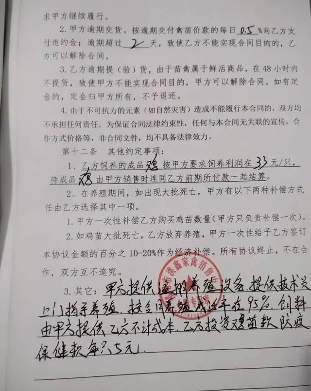 (协议约定:公司一次性补偿3000只鸡苗,若成活率达不到60%,公司将终止合作,养殖户自行承担后果。)