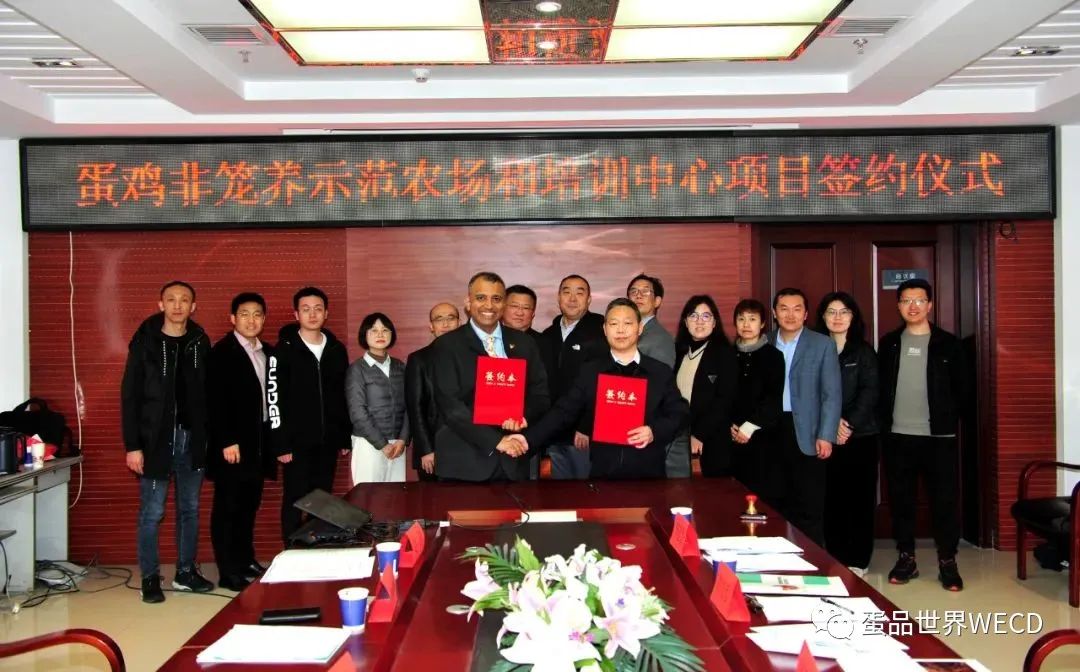Nuggehalli签署合作协议,我国第一个蛋鸡非笼养示范农场和培训中心项目在太原正式启动。