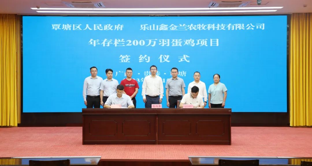 17)、5月,广西贵港市覃塘区举行乐山鑫金兰农牧科技有限公司年存栏200万羽蛋鸡项目签约仪式。