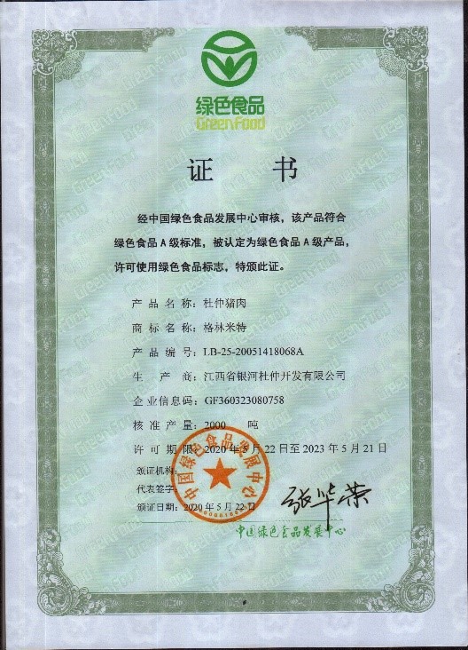 据张总介绍,江西省银河杜仲开发有限公司研发创造了中国高端生猪品牌“格林米特”杜仲猪肉。这些生猪得以在山清水秀、自然生态的环境中饲养,并且采用了杜仲特色饲料,该饲料已获得国家专利技术。这些猪肉的品质达到了奥运会运动员食用标准,这种生猪的核心价值在于运用杜仲取代了饲料中滥用抗生素的使用,因为杜仲具有杀菌和提高动物免疫力的作用。2008年,这种生猪也获得了中国首个活体生猪的绿色认证,并且曾两次被中央电视台7套进行专题报道。2012年,国家体育总局自行车击剑训练中心参加了伦敦奥运会,其中的运动员连续8个月食用了"格林米特"的杜仲猪肉。2014年,在南京举行的世界青年奥运会上,这种猪肉又成为了运动员们独家供应的食品。"格林米特"杜仲猪肉不仅保证了无抗生素残留、无瘦肉精和无生长激素,还因为杜仲中含有丰富的绿原酸,使得这种猪肉不仅安全可靠,而且口感独特美味。