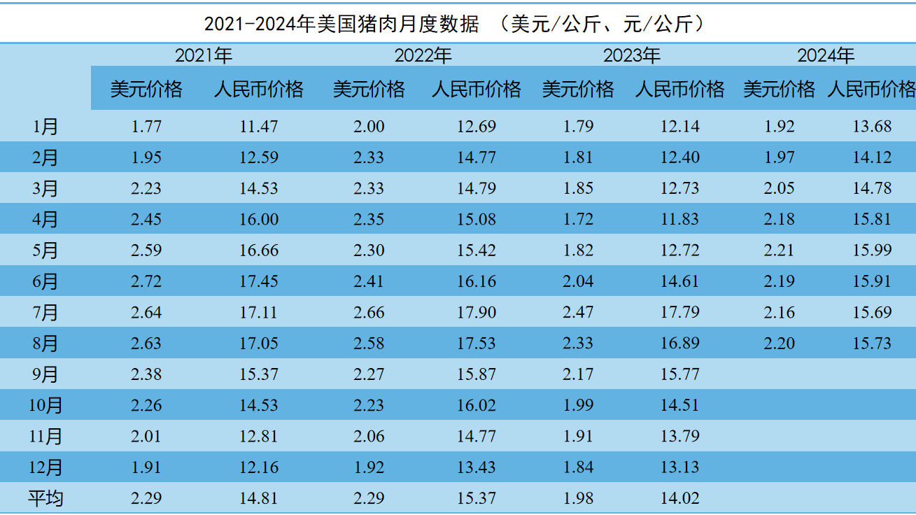 价格方面:美国鸡肉价格小幅回落,同比上涨12.4%,8月份价格按同期汇率折算为22.07元/公斤;