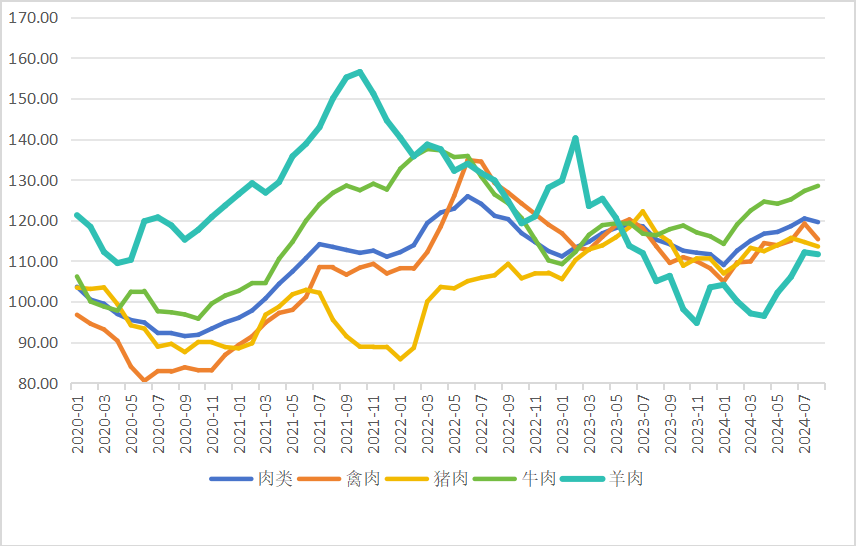 2020年以来全球肉类价格指数变化趋势图