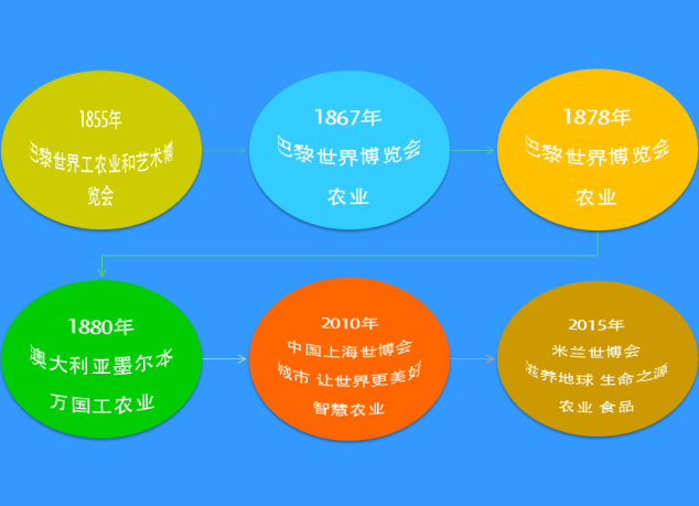 从1851年在英国伦敦举行的全世界第一场世界博览会——万国工业博览会,到2015年意大利米兰举行的第43届世博会,世博会已走过160年。国际畜牧网记者通过查阅相关世博会史料获知,160年来,共有三届世博会以农业为主题,有六届世博会对农业给以了特别关注。