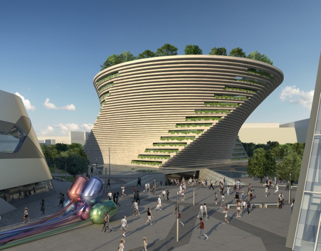 2015米兰世博会中国馆,外形如同金色麦浪