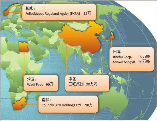 图3 中国的三旺集团、 日本的 Itochu Corp.和 Showa Sangyo 等成为最接近百万吨级的饲料企业