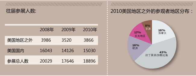 2010年1月美国亚特兰大展会,参观人数接近1.9万人,较2009年超出1200人,其中美国地区之外的参观者达4000余人,分别来自全球的109个国家。参观人数的增加,预示着美国国内经济的复苏,和国内家禽市场的健康发展。