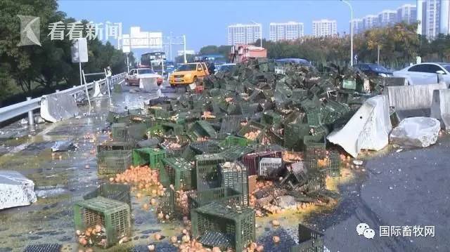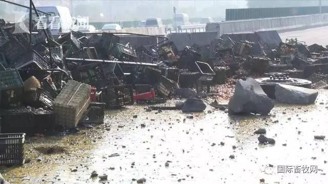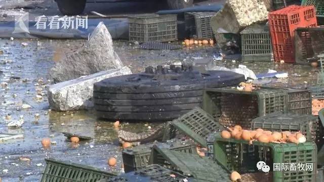 大货车装17吨鸡蛋侧翻 30多万枚鸡蛋碎一地