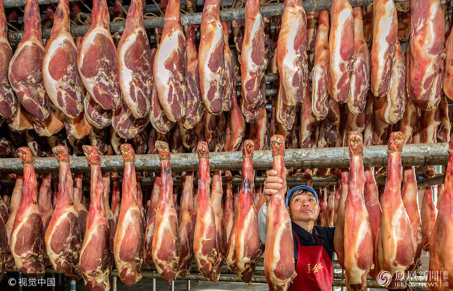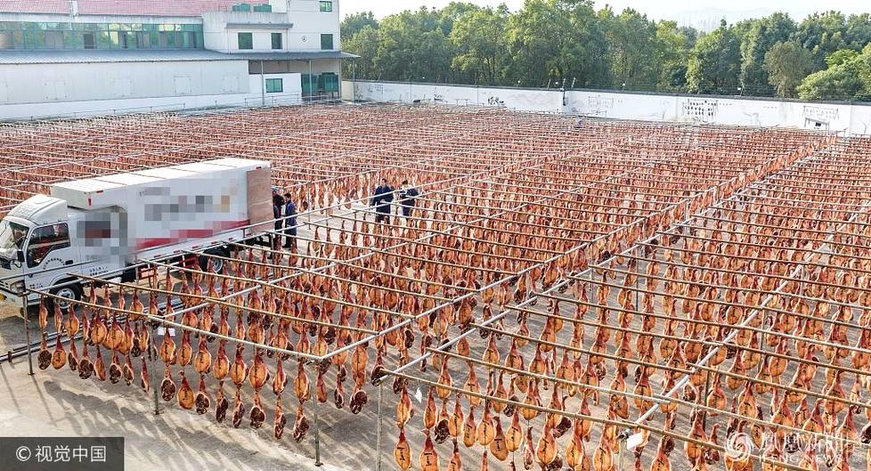 震撼!浙江金华万只琵琶火腿齐晾晒