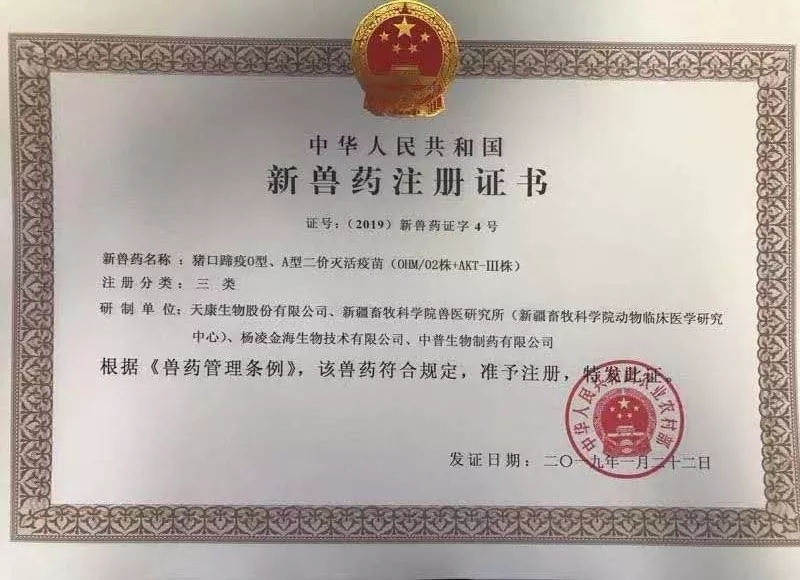 普莱柯、子公司及参股公司获得3个新兽药证书