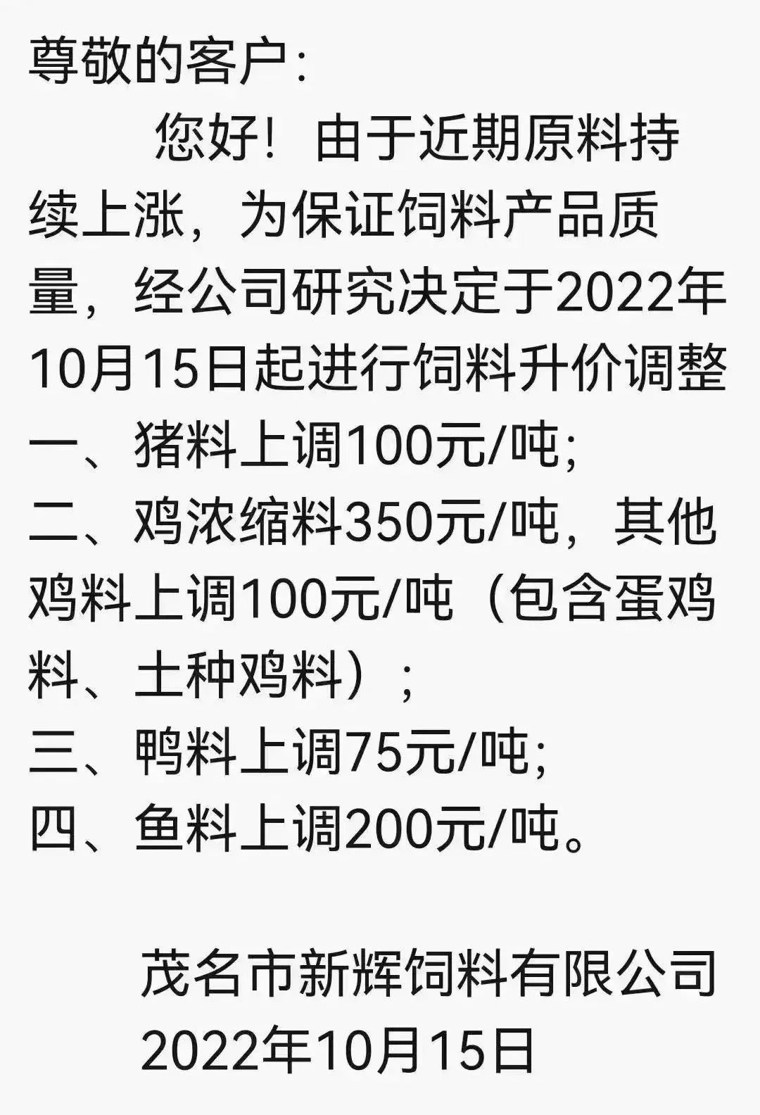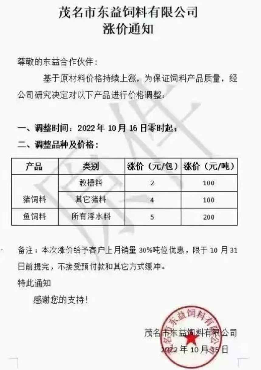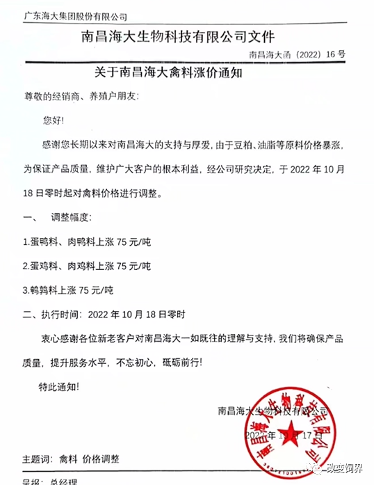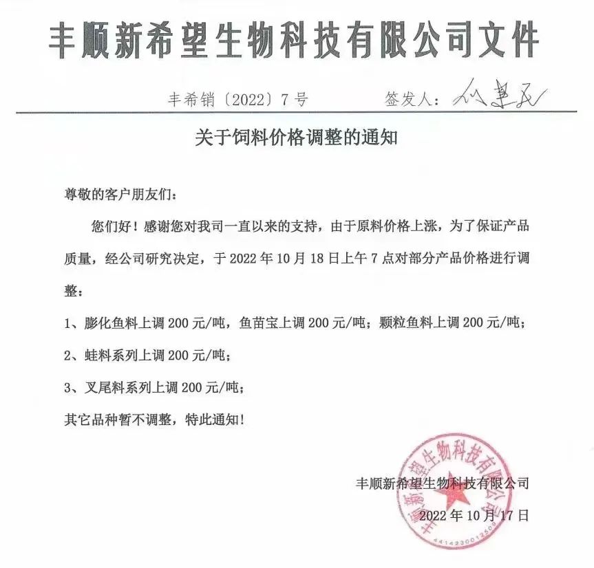 新希望、正大、通威、海大、正邦、东方希望等饲企又涨价