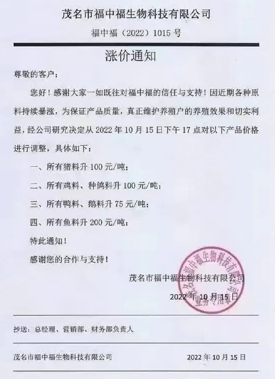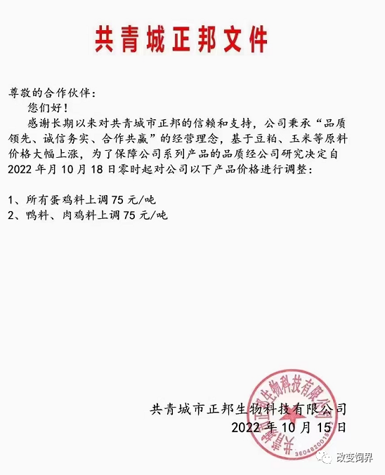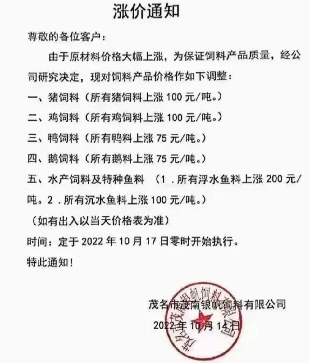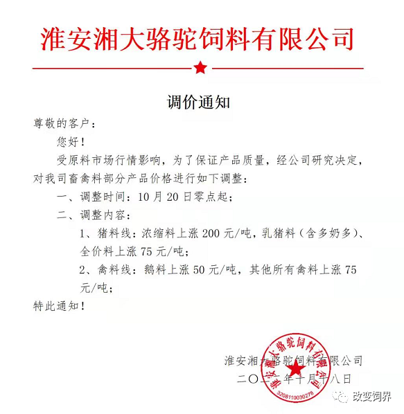 新希望、正大、通威、海大、正邦、东方希望等饲企又涨价
