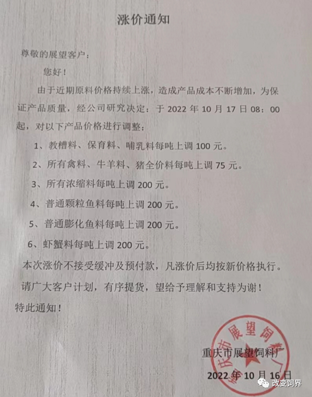 正大、海大、特驱、通威、新希望、东方希望、大北农等饲企加入涨价大潮