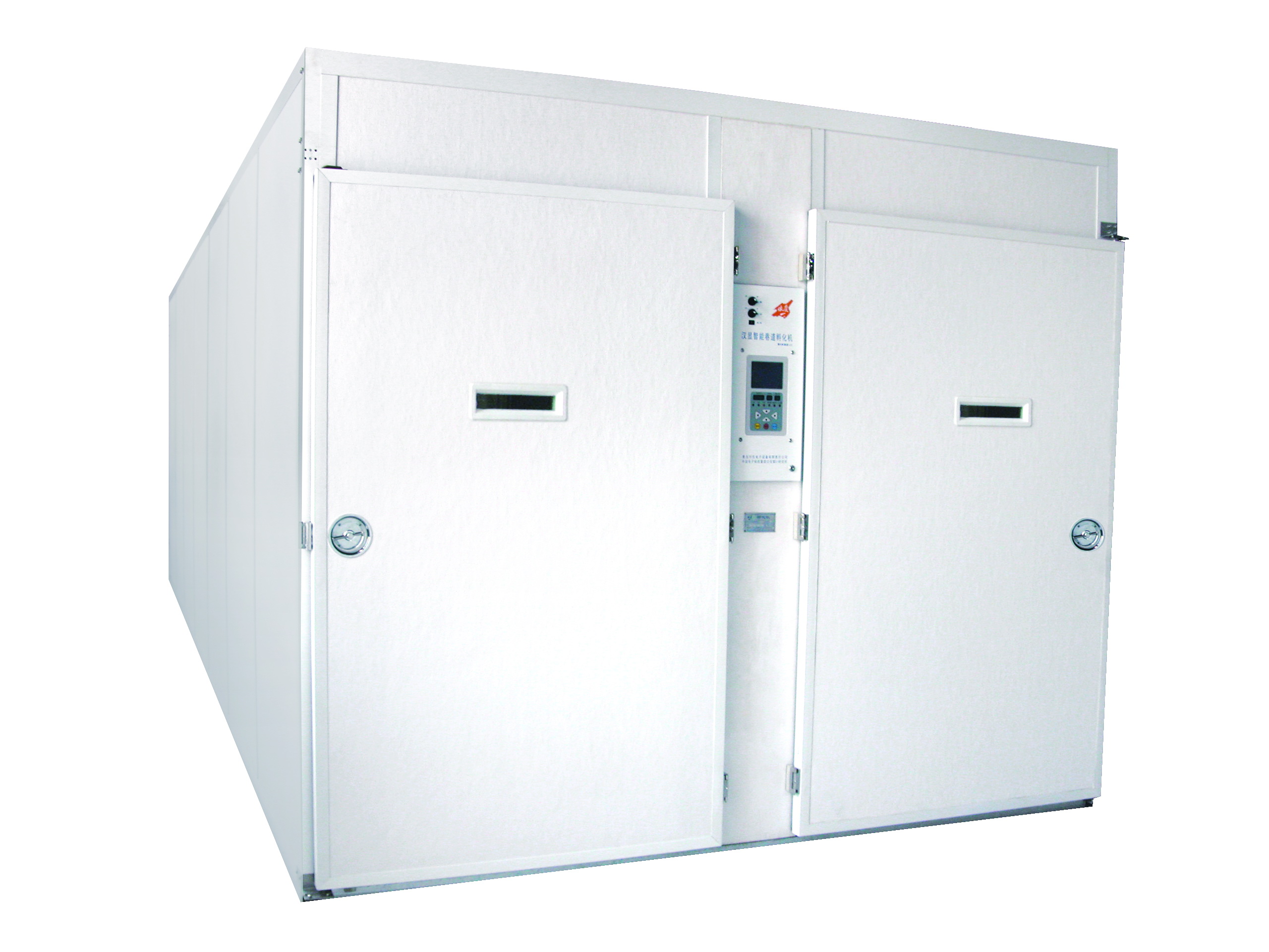 老蛋孵新蛋:巷道式孵化设备箱体容蛋量较大,采用分阶段上孵(每三天或每三四天上一批种蛋)的方式,充分利用后期胚胎产生的较大自热供前期种蛋吸收,独特的梯形温度场实现了“老蛋孵新蛋”的工艺,可以大大降低了加热能耗。
