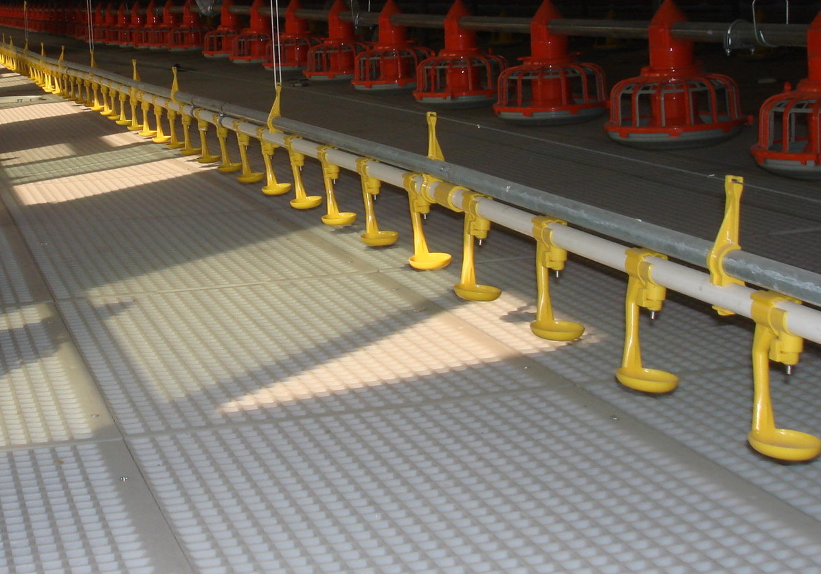悬挂机构的承载能力达到1.35吨以上,通过手动或电动绞盘机构的运转可以轻松调节喂料系统的高度,以此来适应家禽日龄增长和限料饲养的要求。