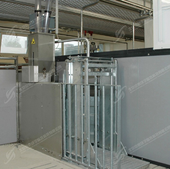 隔离设施保证特定时间只有一头猪能站立在台上;