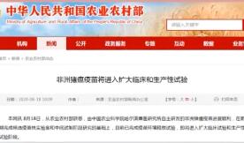 非洲猪瘟疫苗将进入扩大临床和生产性试验