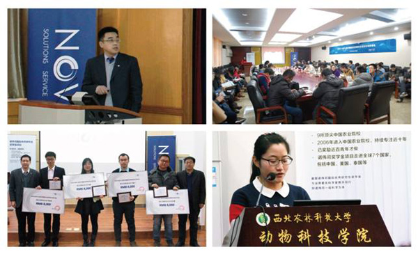 颁奖典礼除了介绍诺伟司及奖学金的基本情况,诺伟司人力资源部门从企业用人角度跟同学们分享“人才如何脱颖而出”,怎样在工作岗位及生活中表现优异;研发技术部同事则分享了诺伟司的研发进展、畜牧业面临的挑战及诺伟司的解决方案。此外,还有行业合作伙伴立华牧业的共同参与。