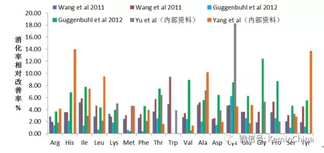 图2 蛋白酶对猪日粮每种氨基酸消化率的影响