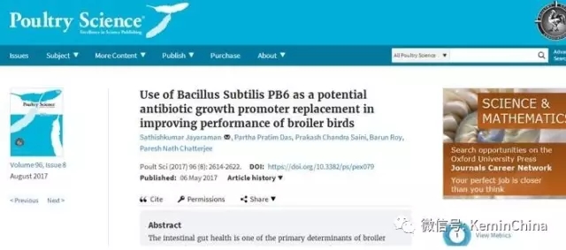 建明工业的专利益生菌克洛生PB6替代抗生素风靡欧洲多年,在美国、中东、东南亚、印度、中国等地备受推崇,在国际不同知名杂志发表了众多文章(建明肠道健康文集收录了产品发表的中外文章,敬请索阅!)如今克洛生再下一城,印度相关的研究结果今年7月在国际最著名也是最专业的家禽杂志《Poultry Science》发布(不是中国的《家禽科学》)。这次克洛生替代双水杨酸亚甲基杆菌肽(BMD)和阿维拉霉素,你感兴趣吗?感兴趣就赶紧来看看吧。