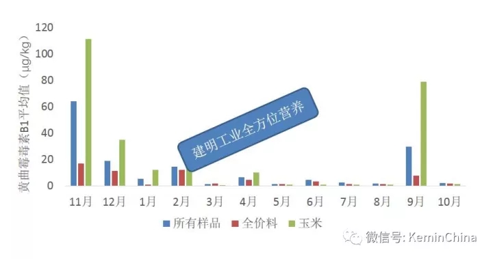 从历史数据来看,10月份黄曲霉毒素B1污染程度较轻。